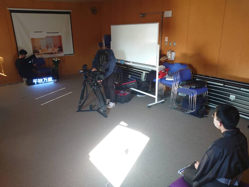 八王子市いちょうホールにて、初回の撮影風景。この時だけ登場した小道具も。