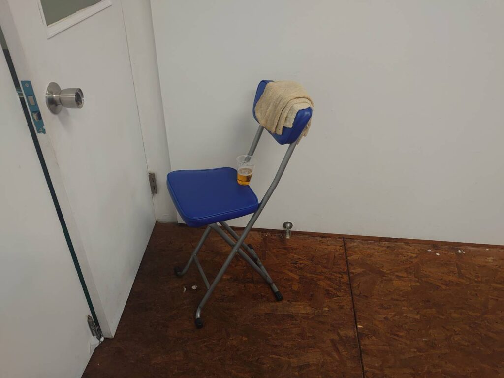 それがあって、僕のビデオが隅に置いてあって、内田さんが常駐しているのを隔てて、マッサージ機とカレーが吊られているというのがあって。