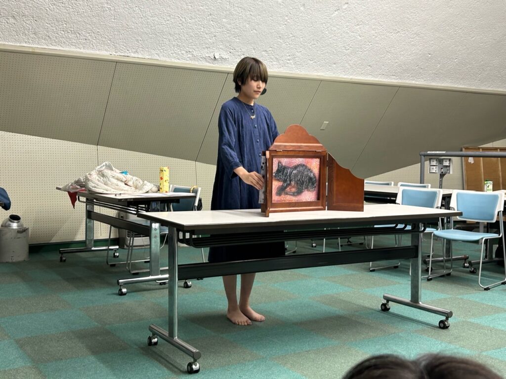 メンバーのほーりー(堀慎太郎)ともりもり(森口夏希)が紙芝居『祭の晩』『ちっちゃいこえ』をぱちぱちメンバーの前でそれぞれ発表しました。