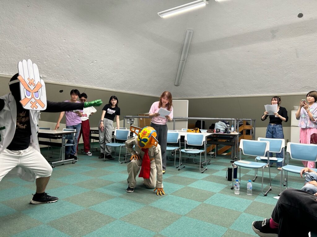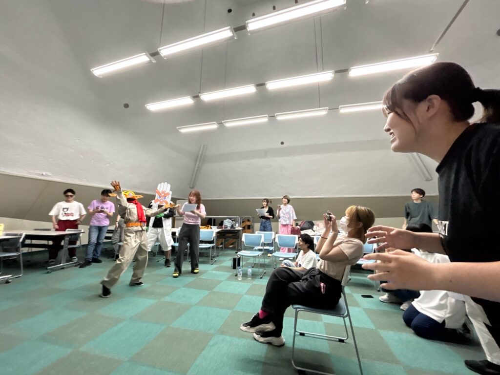 去年のマジゲキは「高校生をサポートするぱちぱちメンバー」という構図でしたが、今年は「お互いがやりたいからやってみる」という若尾稽古会と同じ構図に変更。ぱちぱちメンバーがやりたいことを高校生を巻き込んで行うという形になったことで、ぱちぱちのメンバーがより能動的に関われる企画となりました。