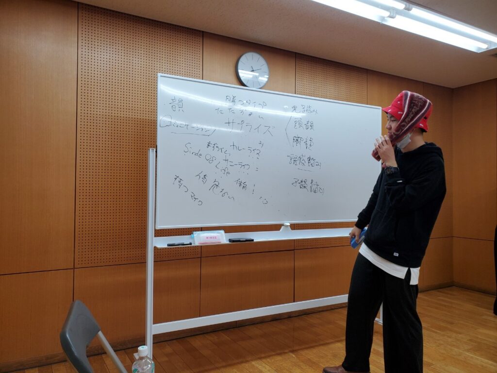元々片倉天国にいたときに、先輩がラップにはまってて、ラップ劇やろうってなって、2022年3月にラップ劇をやったのをきっかけに、俺もラップが好きになってて、それ以来片倉天国で演劇の活動としてラップを取りいれるようになった。それ以降やってないけど、これはぱちぱちに持ち込んだら面白いんじゃないかって思った。ぶっちゃけ演劇に役立つとかっていうのはあるけど、ラベルみたいなもので普通にラップしたいよねって言うのが本音なところです。それでぱちぱちでもラップできる場ができたら楽しいよねって言う話で立ち上げましたね。