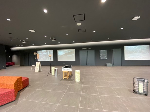 そうしてなんとか体育館に到着したものの、入り口には「豊岡演劇祭」と書かれた赤い幟とポスターが貼られた立て看板があるのみ。『これ本当に会場で合ってる?』と2人で首をかしげるも、薄暗いロビーに(昼間だったからなのか、なぜか電気がついていなかった)何人か人が座っていたので、多分恐らくきっとそうだろうと信じ、開場時間を待つこと数分、無事に体育館の扉が開き『ルサンチカ開場しま〜す』の声が。ああ良かったとホッと一息。受付を終えてパイプ椅子に座る。演劇祭のロゴが書かれたTシャツを来てる人がいたので、「そのTシャツってどこで売ってるんですか?」と聞いたところ、豊岡駅のところに演劇祭の本部のような場所があり、そこで売っていたとのことだった。白地に赤のデザインが可愛くて、ちょっと欲しくなった。