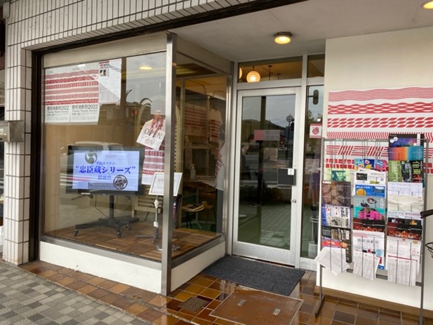 お昼ご飯を食べたのちにゆうかさんと一旦別れ、予定通り豊岡駅へ行くことに。“豊岡”演劇祭というくらいだから、豊岡駅は演劇祭で盛り上がっているはず!と期待して駅に降り立つと、革製品のバッグたちがお出迎え。名産地なんですって。しかし赤い幟など、演劇祭らしい装飾は見当たりません。あれ?演劇祭はどこですか?