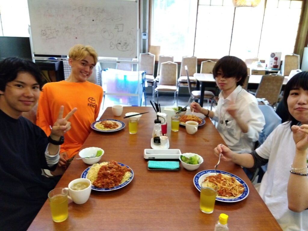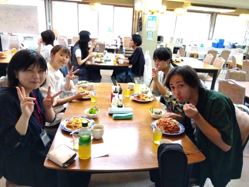 今回の合宿では、ウォーミングアップとして大いに効果を発揮し、サイファーをみんなで楽しんだことで合宿参加者がお互いのことを知ることができ、居心地の良い空間にしてくれました。初対面の人もいる中みんな仲良しに⭐️写真はみんなでご飯を食べている様子です!