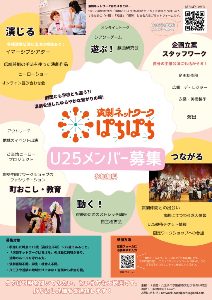 「ぱちぱちの演劇ワークショップ祭り」は、2025年5月に開催したいろいろな自分に出会おう。WS企画の第2弾として、ぱちぱちの企画制作部が企画・立案したものです。