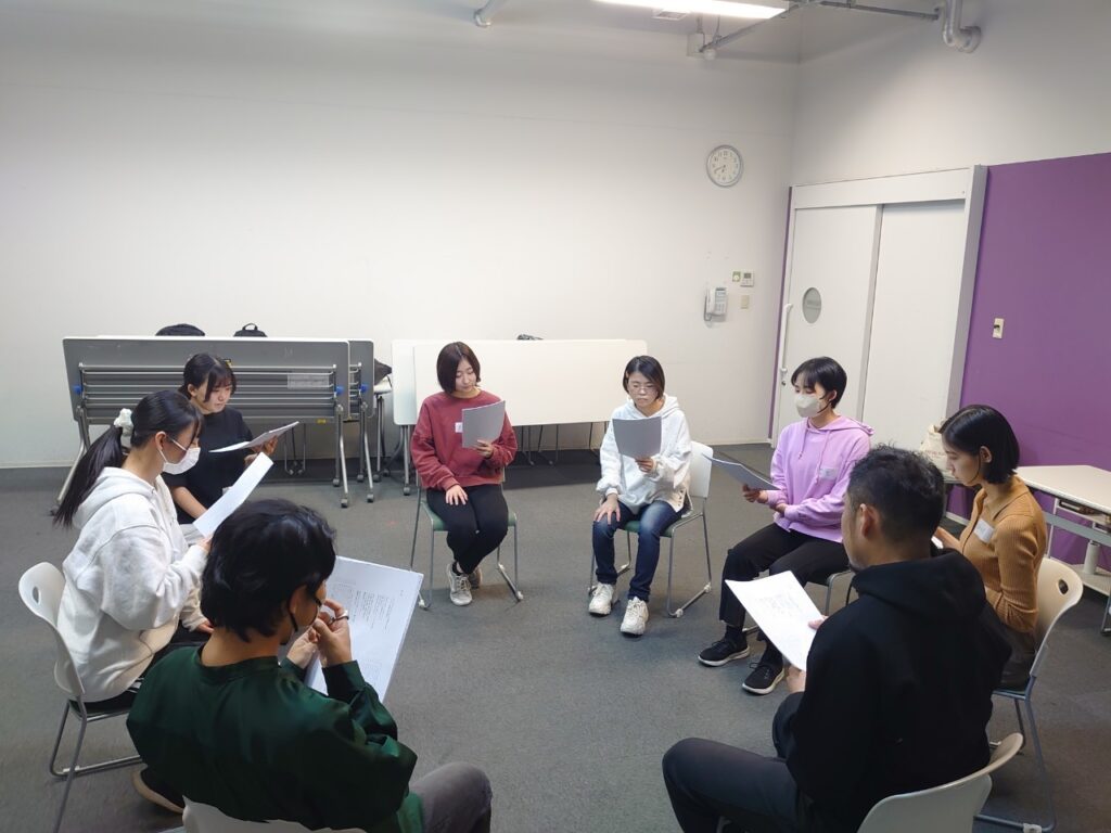 役を決めるのではなく、台詞ごとにひとりひとり回して読みました。