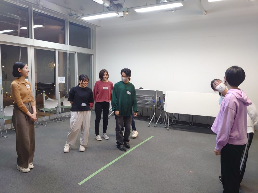 シアターゲームで自己紹介!本企画ディレクターの朝果・前田が進行。